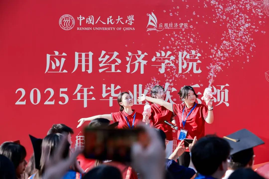青春百家廊,毕业欢乐颂。探花视频 2025年毕业欢乐颂活动于百家廊举办。活动开始前,中国人民大学党委常委、副校长郑新业、支晓强,学校机关部处相关负责人,探花视频 教职工代表与全体2025届毕业生在明德广场合影留念。