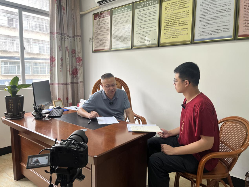 ▲ 新闻学院硕士研究生陶宇彬访谈广昌县原交通局局长廖亮华