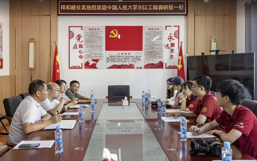 ▲调研团在旴江镇祥和路社区座谈