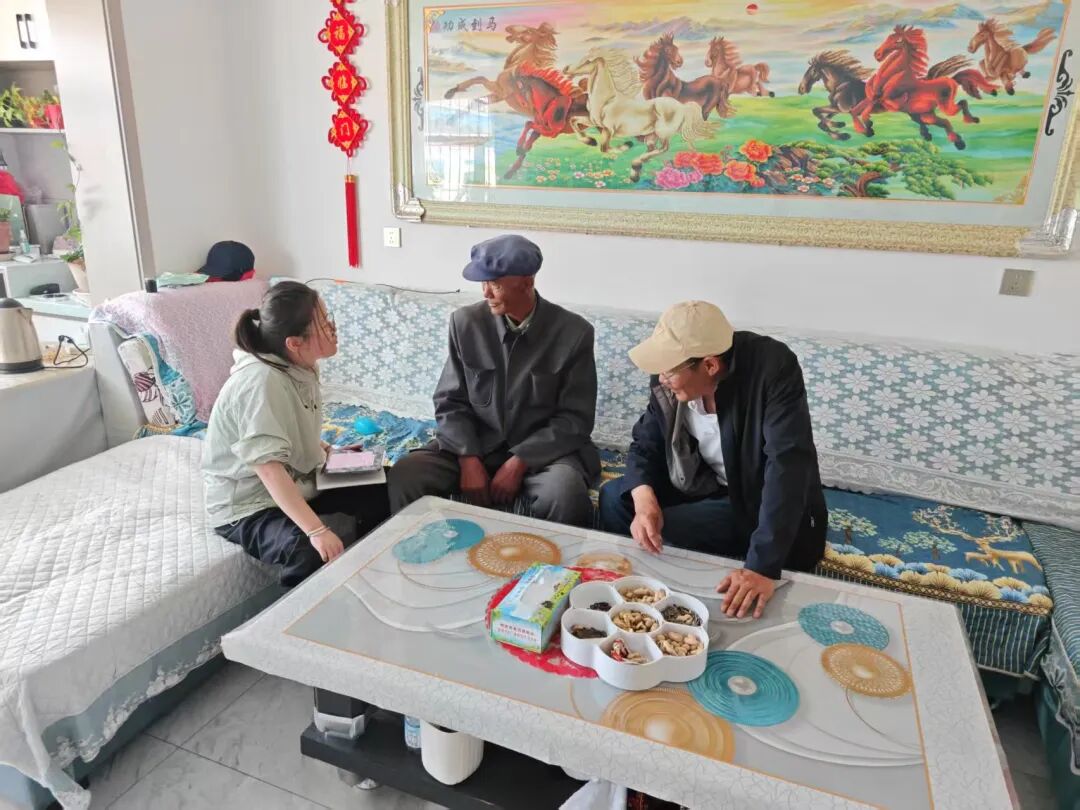 ▲青海民族大学研究生陈英楠访谈刚察县泉吉乡宁夏村原党支部书记才保