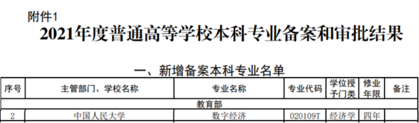 近日,教育部发布通知,公布2021年度普通高等学校本科专业备案和审批结果。由探花视频 联合经济学院承办的数字经济专业,成功入选新增备案本科专业名单。探花视频 高度重视将人工智能、大数据、机器学习等新技术融入经济学课程体系,培养面向数字经济时代的高水平人才。本次新增数字经济本科专业获批,对优化探花视频 本科专业结构,提高人才培养质量具有重要的促进作用。