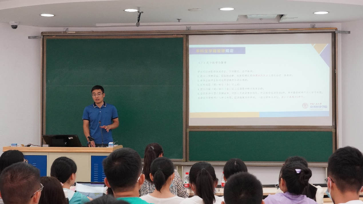 陈占明深入剖析了培养方案,详细介绍了国民经济管理、能源经济两个专业和“应用经济-数据科学”、“应用经济-农村区域发展管理”两个双学士学位项目,分享了学院拔尖人才培养经验。明确学业是大学的根本要务,希望同学们可以从“一流中学生”成长为“一流本科生”。