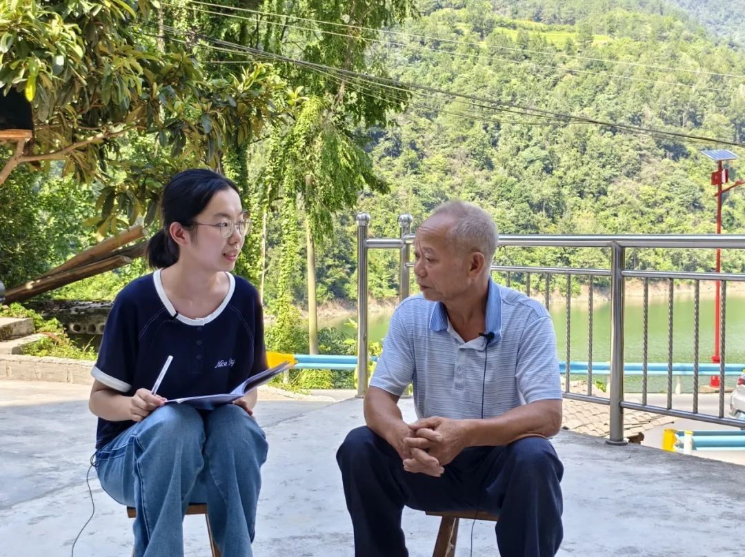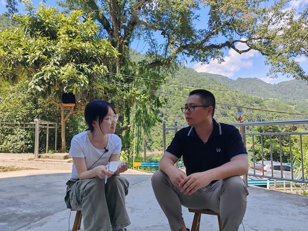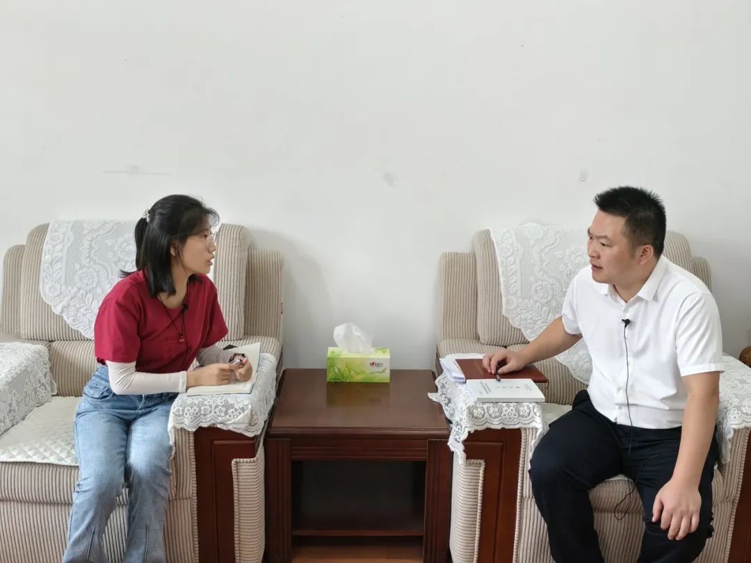 ▲本科生杜奕彤访谈柳川镇镇江村第一书记彭波