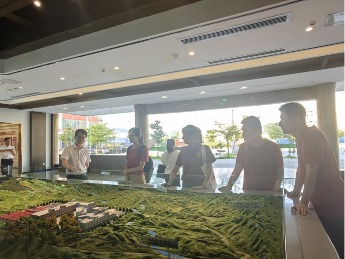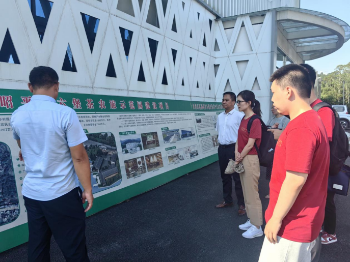 7月24日下午,调研团前往广西茶叶展示中心。茶叶展示中心位于昭平县六堡茶农旅示范园区中心,因储存了大量的茶叶产品和原茶,也被称为“六堡茶仓”。在展示中心一侧,坐落着广西昭平茶科技小院,与北京大学、中国农业大学等高等院校建立校企合作,专家学者们为茶叶优良育种提供技术支持。