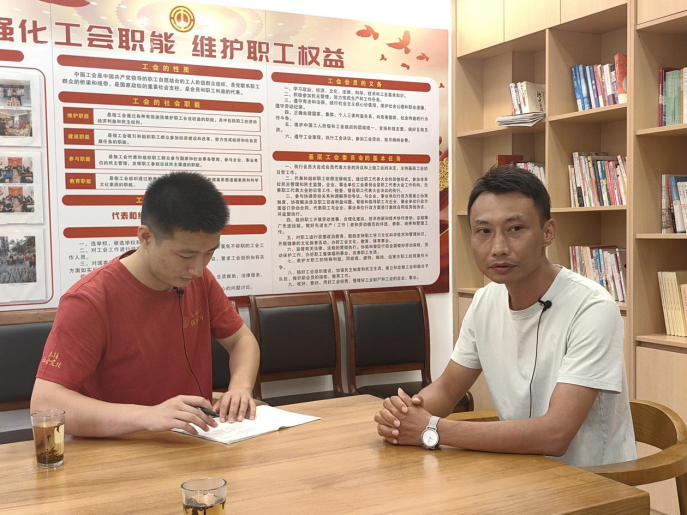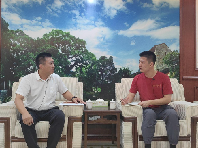 ▲占旭豪访谈昭平县昭平镇党委书记李永强