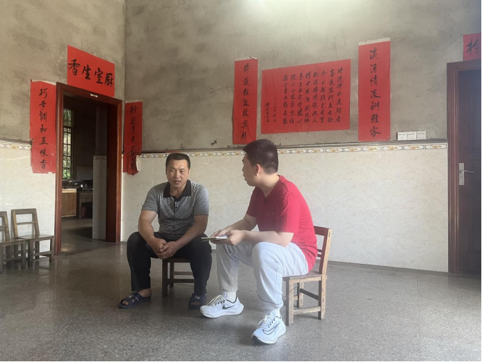 ▲孔儒婧访谈昭平县政协教科文卫史和民族宗教委员会主任(原扶贫办主任)彭斌