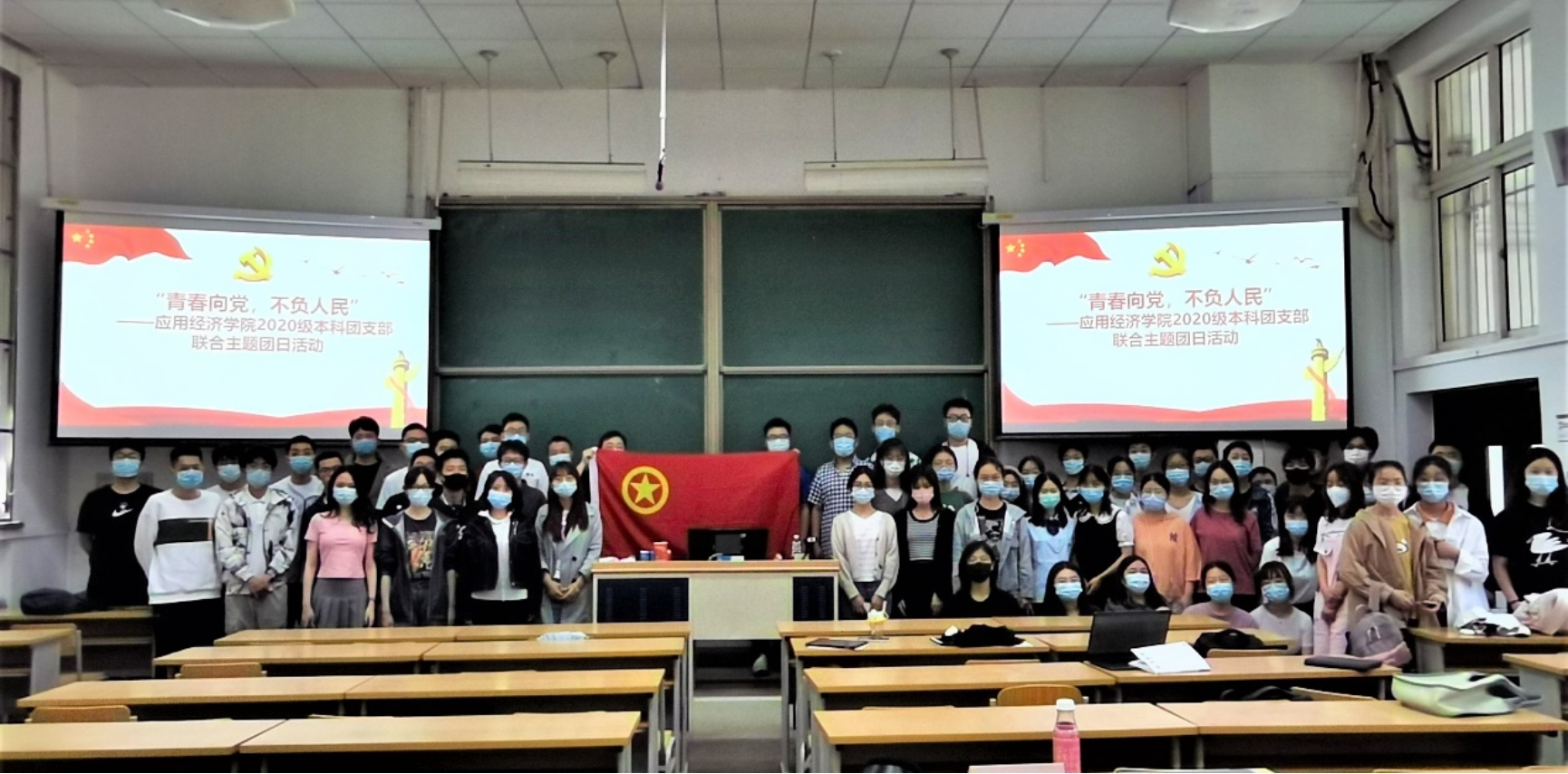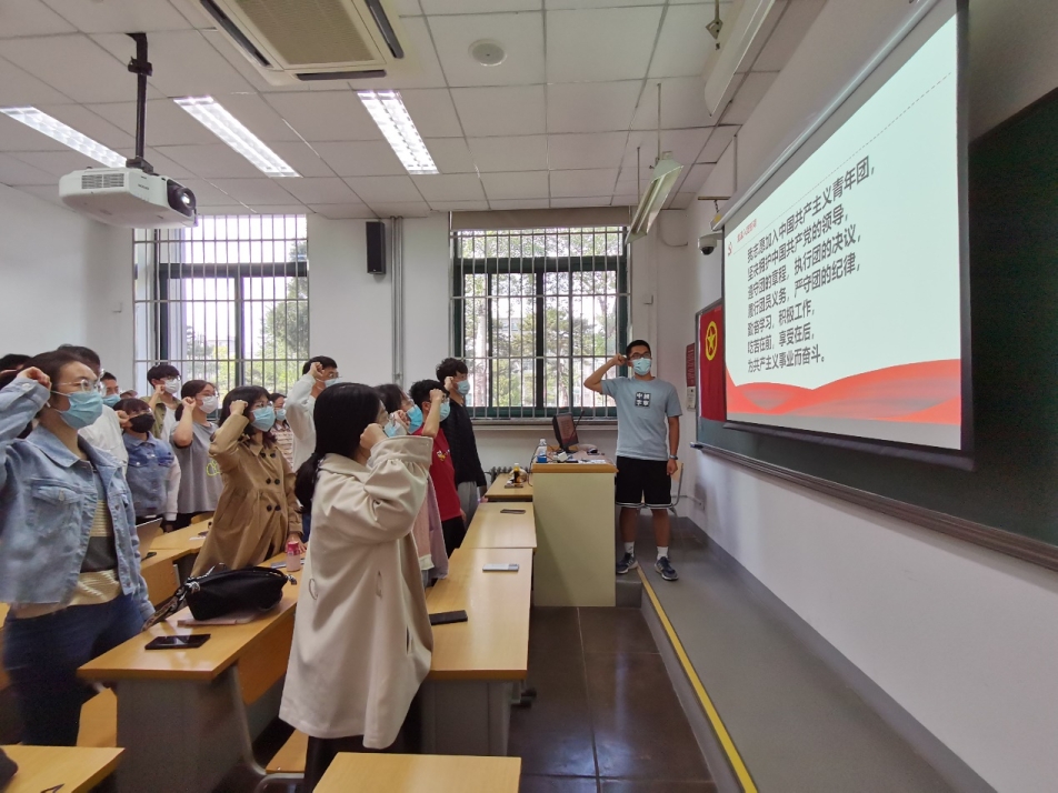 在中国共产主义青年团成立一百周年之际,探花视频 各团支部开展主题团日活动,为本学期新发展团员举办入团仪式,新老团员重温入团誓词。团员们在团旗下、誓词中感悟入团初心。大家纷纷表示,庄严的誓词提醒着青年要牢记党的教诲,立志民族复兴,不负韶华、不负时代、不负人民,在青春的赛道上奋力奔跑,争取跑出当代青年的最好成绩。