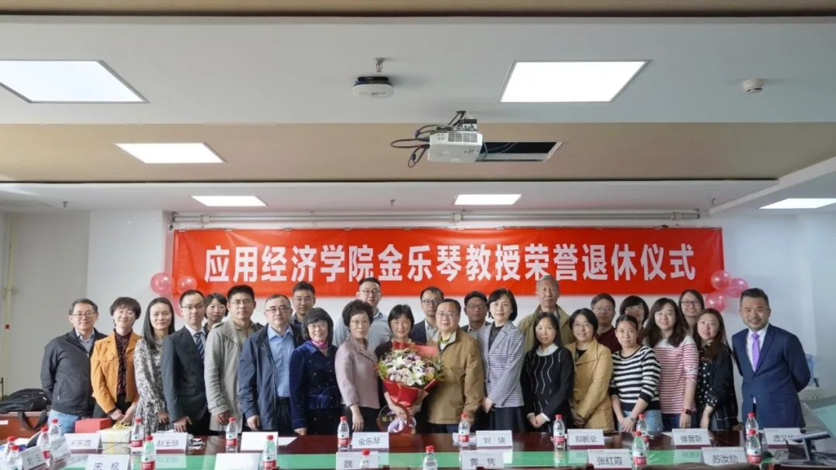 举办金乐琴教授荣誉退休仪式,仪式由院党委书记宋东霞主持,院长郑新业等三十余位学院教师职工参加。