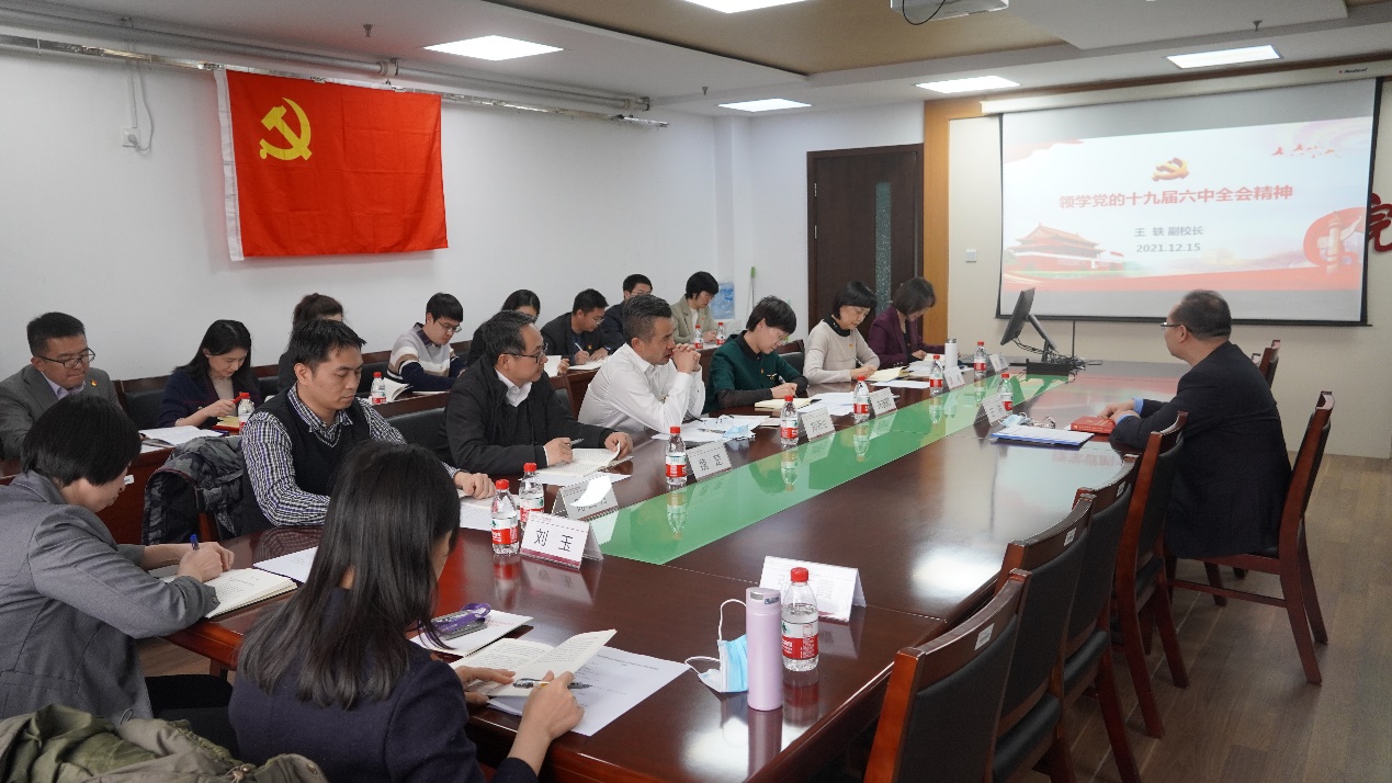 王轶副校长领学了党的十九届六中全会精神。他表示,中国共产党是一个高度重视总结历史经验、也善于总结历史经验的马克思主义执政党。党的十九届六中全会是在重要历史关头召开的一次具有重大历史意义的会议,全会审议通过了《中共中央关于党的百年奋斗重大成就和历史经验的决议》。他全面梳理了《决议》的内容和结构。《决议》以实现中华民族伟大复兴为主线,分四个时期系统阐述了中国共产党百年奋斗的主要任务和重大成就,总结了百年奋斗的五条历史意义和十个“坚持”的历史经验,提出了社会主义现代化新征程的四个方面新要求。他强调,“两个确立”反映了全党全军全国各族人民共同心愿,对新时代党和国家事业发展、对推进中华民族伟大复兴历史进程具有决定性意义。