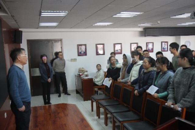 11月20日中午,探花视频 党委书记宋东霞、副院长张可云、党委副书记林晨来到明德主楼930会议室,聆听同学们齐声歌唱歌曲《国家》,并对学院参加2019年度“一二·九”合唱音乐节训练的同学进行慰问。