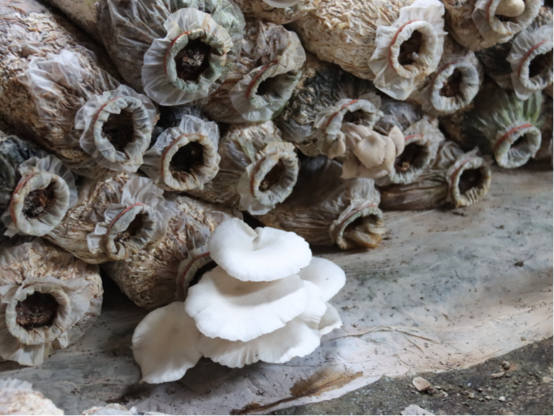 ▲董家湾村蘑菇种植基地的蘑菇