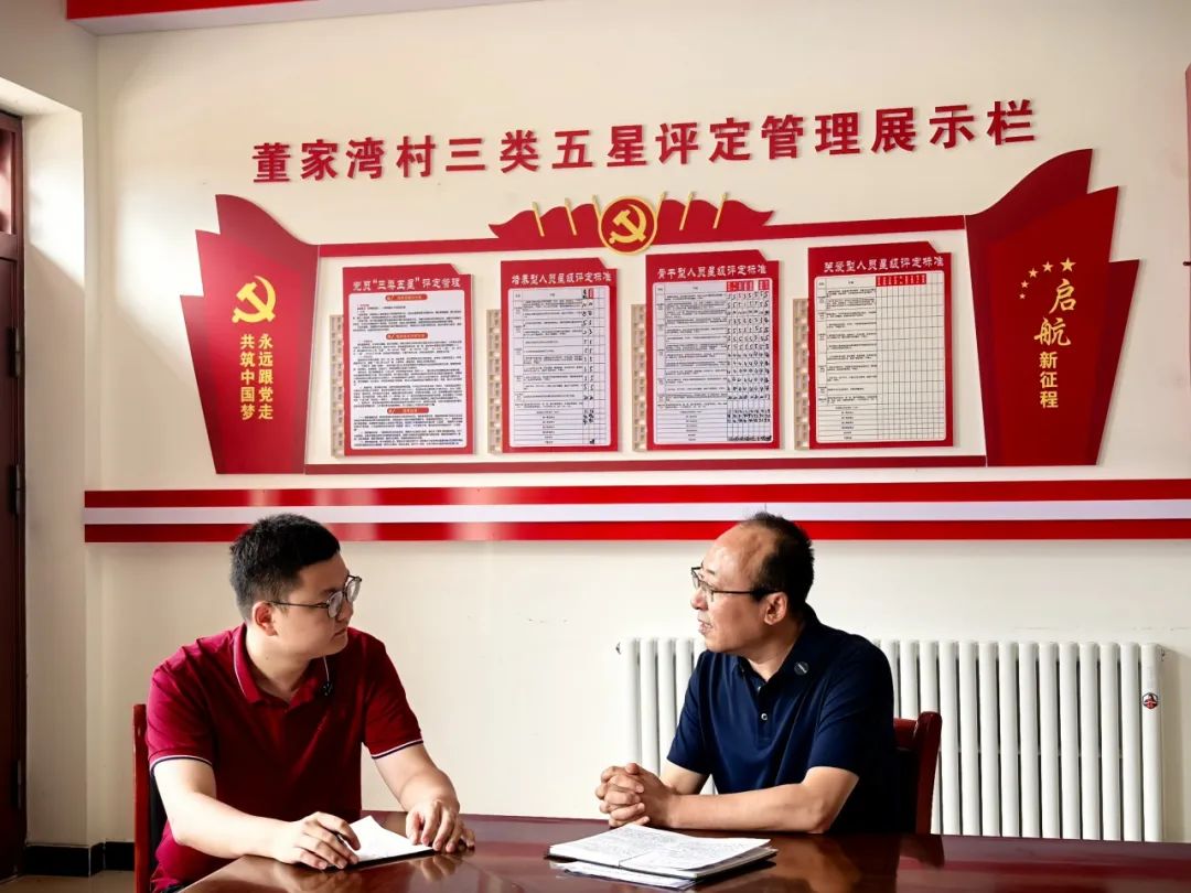 7月27日上午,调研团队抵达子洲县苗家坪镇董家湾村开展调研。董家湾村联合高家砭村和梁渠村创新性地推出支部联建“三同九联”这一工作模式。“三同九联”以“同心、同工、同富”为核心引领,以九大联动机制为实践路径。“同心”即聚焦思想与组织统一,“同工”即治理与环境协同,“同富”则是瞄准产业与利益共赢蓄积发展合力。