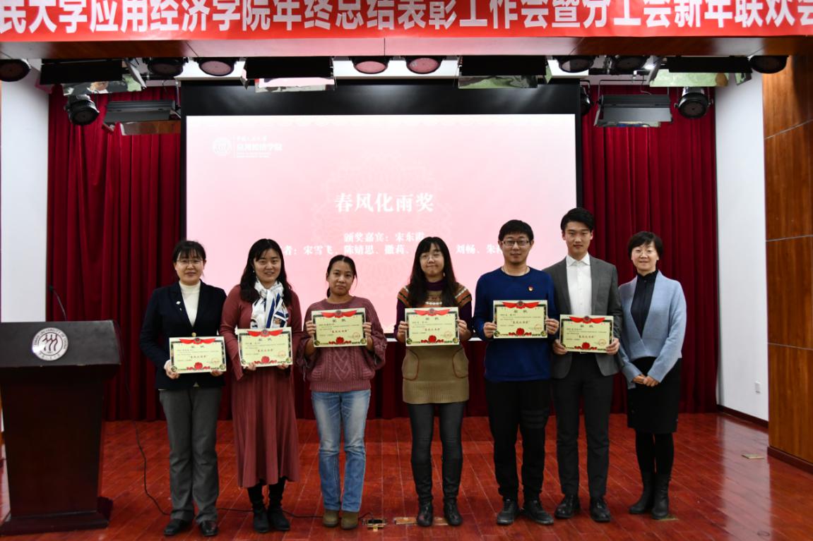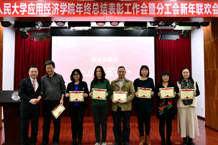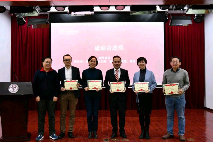 会上还进行了表彰环节,党委副书记、学院分工会主席林晨宣读了学院获奖表彰名单,本次表彰共设置砥砺奋进奖、公正力量奖、敬业奉献奖、进步启智奖、从教贡献奖等十个奖项,旨在表彰在2019年中在不同领域为学院做出贡献的先进个人。在热烈的气氛中,学院领导班子和学术委员会成员为获奖个人颁发了荣誉奖状。