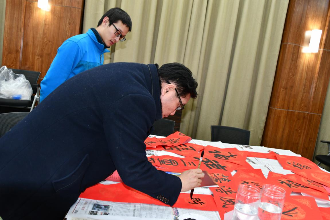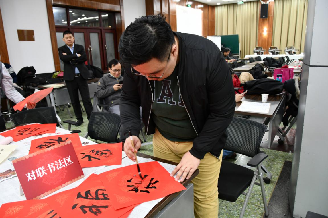 书法交流区也吸引了许多老师的参与。一幅幅对联,一张张福字,散发着墨香,承载着年味,更包含着美好的祝福,也寄托着学院老师们对新年美好的憧憬和愿望。在新春歌会上,老师们纷纷一展歌喉,《暖暖》、《海港之夜》、《小幸运》《sailing》《酒神歌》等一首首耳熟能详的歌曲,将氛围推上了高潮。