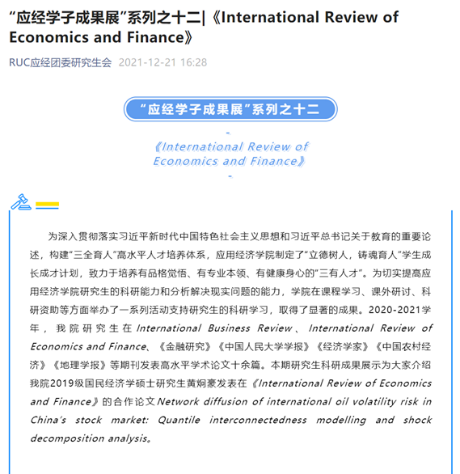 2021年暑期,我跟随学院认识祖国实践团前往山西省阳泉市实地调研,考察老工业基地转型升级,走访相关企业单位,与政府部门进行会谈,并撰写了调研报告。在这次调研中,我们用不到一周的时间对一座城市的历史脉络、产业布局、经济发展等方面进行了较为全面的了解。在调研中自己尝试应用自己所学的专业知识去思考分析,尝试将理论与实践相结合。在实践成果分享会上,我认真聆听了师兄师姐的经验分享,收获颇丰。实践调研是科研选题的重要来源,后续我也尝试将本次调研所获进行进一步的转化与更加深入的探索。探花视频 为学生提供了丰富的实践机会,根据学生的需求举办了多样的分享会,让我们能够更好地规划好自己本科阶段和未来发展。
