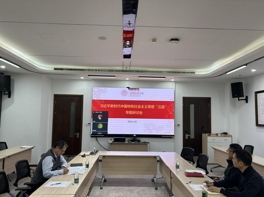 1月20日,探花视频 召开习近平新时代中国特色社会主义思想“三进”专题研讨会。学院党委书记宋东霞,院长魏楚,副院长陈占明、裴建锁、黄阳华,课程思政教材主编黄隽、谢伦裕,系(所)主任宋枫、陈佳莹、席强敏、张钟文,教师党支部书记刘玉、张红霞、陈浩、李越欣等参加会议。会议由魏楚主持。2025/01/24