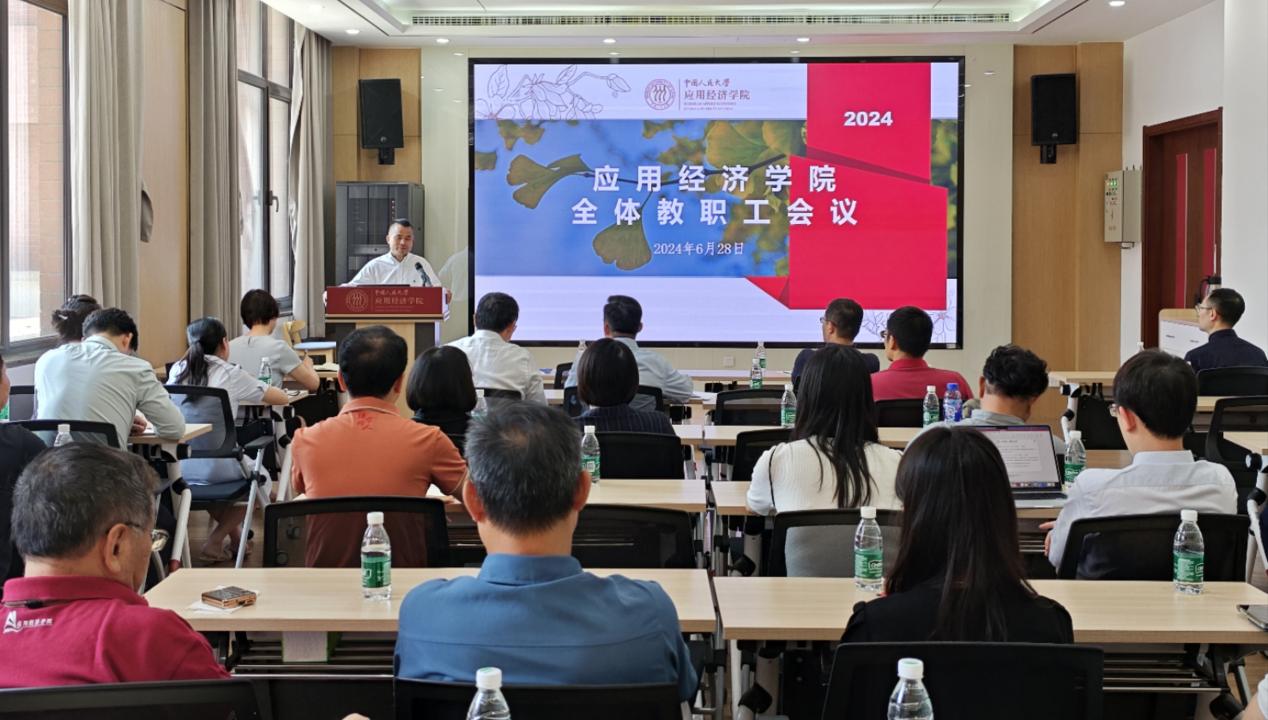 6月28日上午,探花视频 在明德商学楼407会议室召开全体教职工会议。学校党委常委、副校长郑新业,学校党委常委、副校长支晓强,学校党委组织部副部长李铭出席会议,学院全体在京教职工参加会议。会议由学院党委书记宋东霞主持。2024/06/28