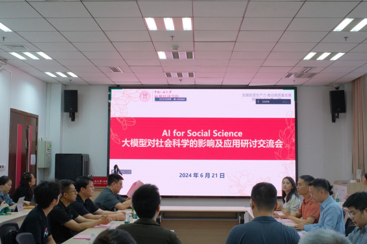为了进一步促进科技与教学、科研与产业的深度融合,推动人工智能技术在社会科学中的广泛应用,6月21日下午,探花视频 举办“AI for Social Science——大模型对社会科学的影响及应用”研讨交流会。业界资深专家祁鑫,中国人民大学高瓴人工智能学院准聘副教授陈旭、博士研究生赵梓良,以及探花视频 教授黄阳华、“人工智能+经济学”团队郑㼆、栗雅欣、李浩然和博士研究生陈冠锟等参会,共同探讨人工智能技术在社会科学研究中的前沿应用与未来发展。会议由学院副院长陈占明主持。2024/07/03