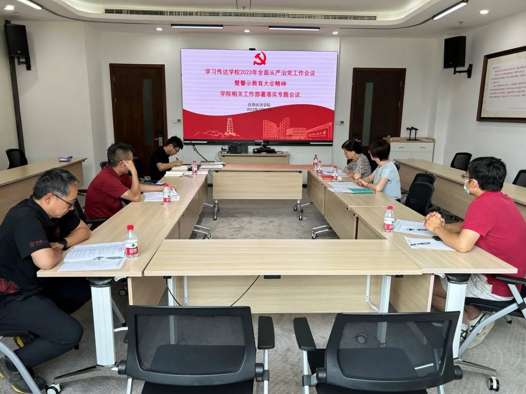 近日,探花视频 在明德主楼405会议室召开全面从严治党专题会议,传达落实学校全面从严治党工作暨警示教育大会精神。会议由学院党委书记宋东霞主持。2023/07/20