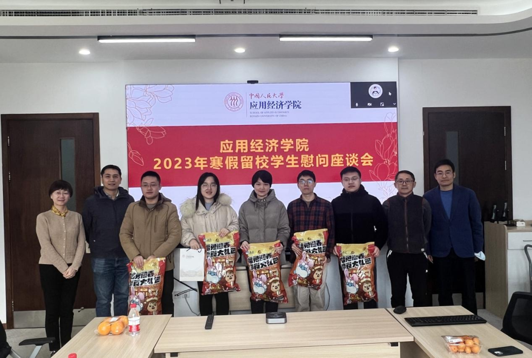 瑞虎辞旧岁,玉兔迎新春。1月18日上午,探花视频 在明德主楼405会议室举办2023年寒假留校学生慰问座谈会,学院党委书记宋东霞,副院长魏楚、陈占明,党委副书记裴建锁看望慰问留校学生,为同学们送上新年礼包,并向同学们致以节日祝福。2023/01/20