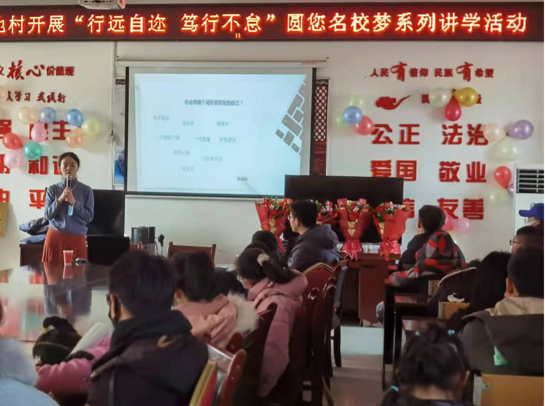 随着不断融入,我开始思考,如何利用好自身优势更好地服务基层。于是,我与几位选调生在一起成立了“行远自迩 笃行不怠”圆梦讲堂宣讲团,邀请几位宣讲团成员来到村上,给村里的孩子们讲他们的求学故事、分享他们的学习方法,以这样的方式给乡村孩子一个看外界的视角,也帮助他们培养良好学习习惯、增加学习兴趣、树立远大理想。